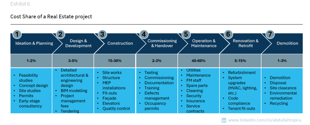 Developers and investors should recognize the critical importance of facility management activities from the outset and collaborate with FM companies both before and after the design phase. This proactive approach can help avoid unnecessary costs throughout the entire real estate lifecycle—from ideation to demolition. As is well known, the most expensive stage of any real estate project is the operational phase. With proper planning and professional FM support, these costs can be significantly minimized.